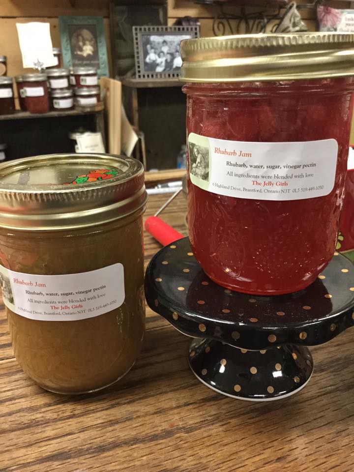 Today, we have the most beautiful rhubarb Jam. Two different kinds of rhubarb, two kinds of flavour. The Canada Red is a favourite for jams and jellies because of the lovely ruby colour and sweetness. The Riverside Giant is a cold hardy rhubarb with green stalks and pink at the base. Both are tasty; one is tart, and one is sweet.
